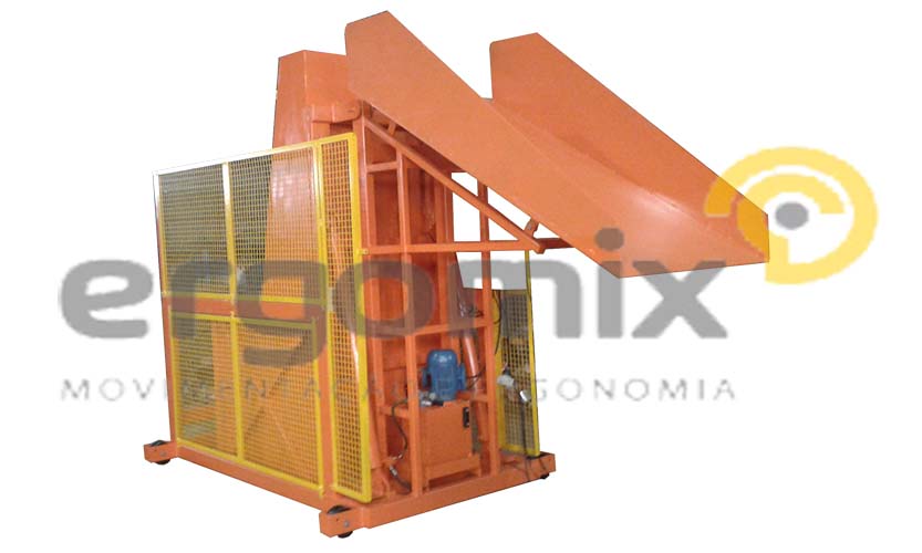 ENTORNADOR DE CAÇAMBA é projetada e fabricada pela ERGOMIX, apresenta estrutura robusta, podendo ser fixa no piso ou com rodas para movimentação.